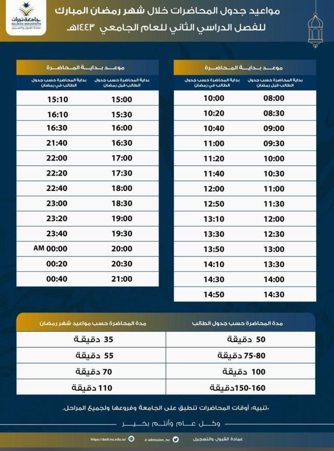null الجدول الزمني للمحاضرات في شهر رمضان المبارك